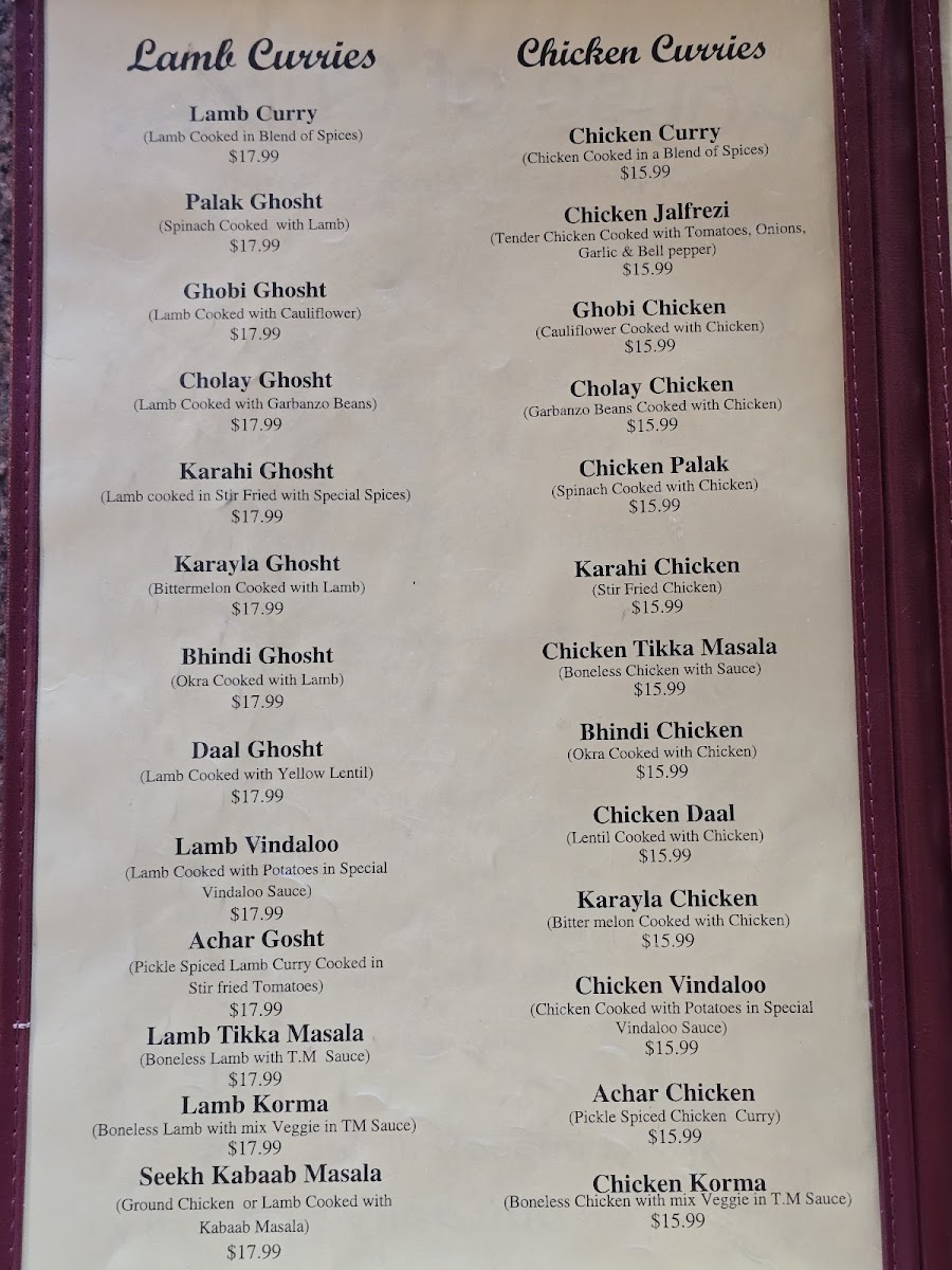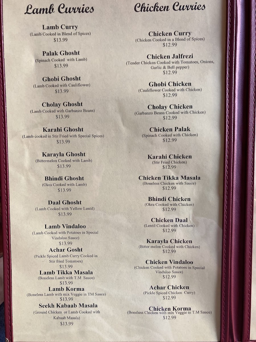 Option of ground chicken or lamb kabab cooked with onion and tomatoes based masala sauce.