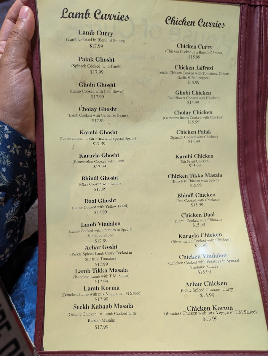 Lamb cooked with potatoes in special vindaloo sauce.