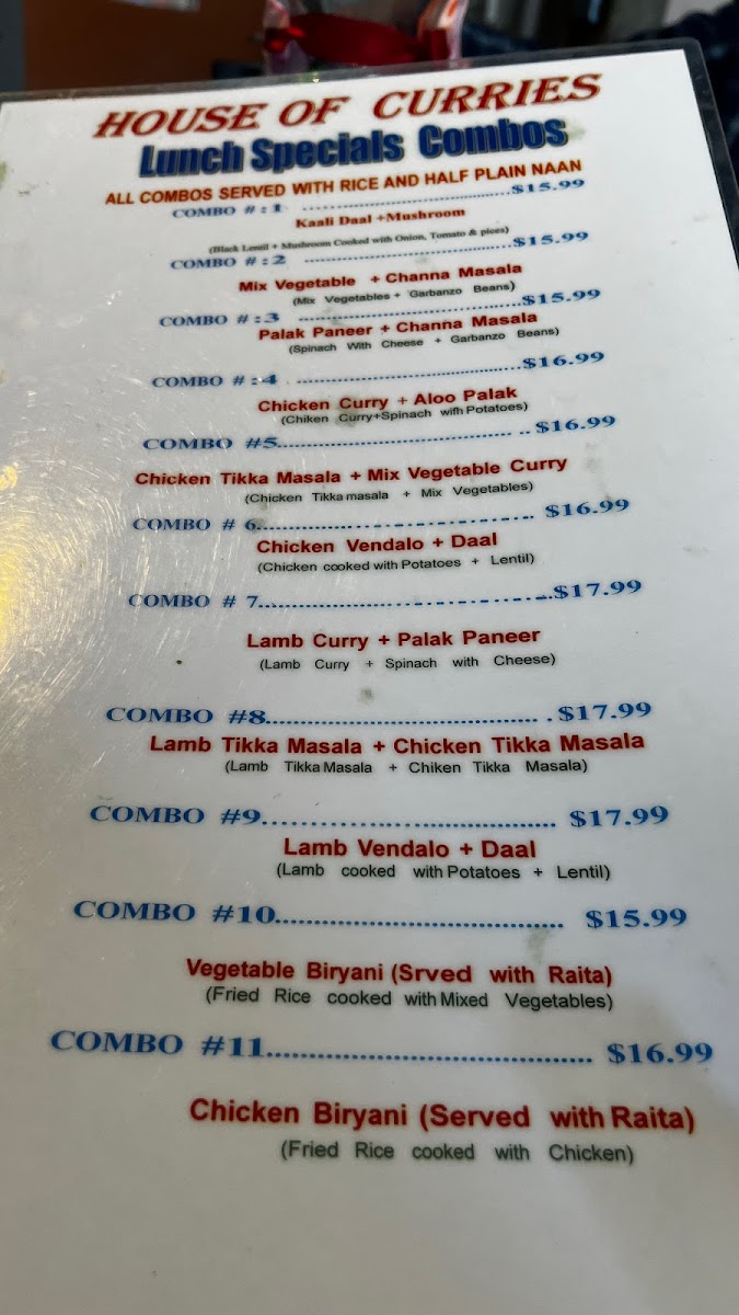 Goat cooked with potatoes in special vindaloo sauce.